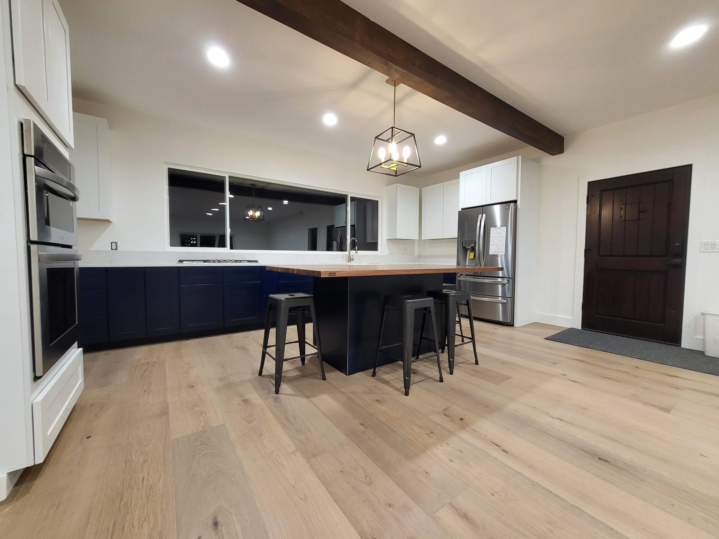 We transformed an outdated kitchen into an open, modern space with new cabinetry, a spacious island, and high-efficiency appliances. The warm wood accents and clean layout enhance both everyday living and hosting.